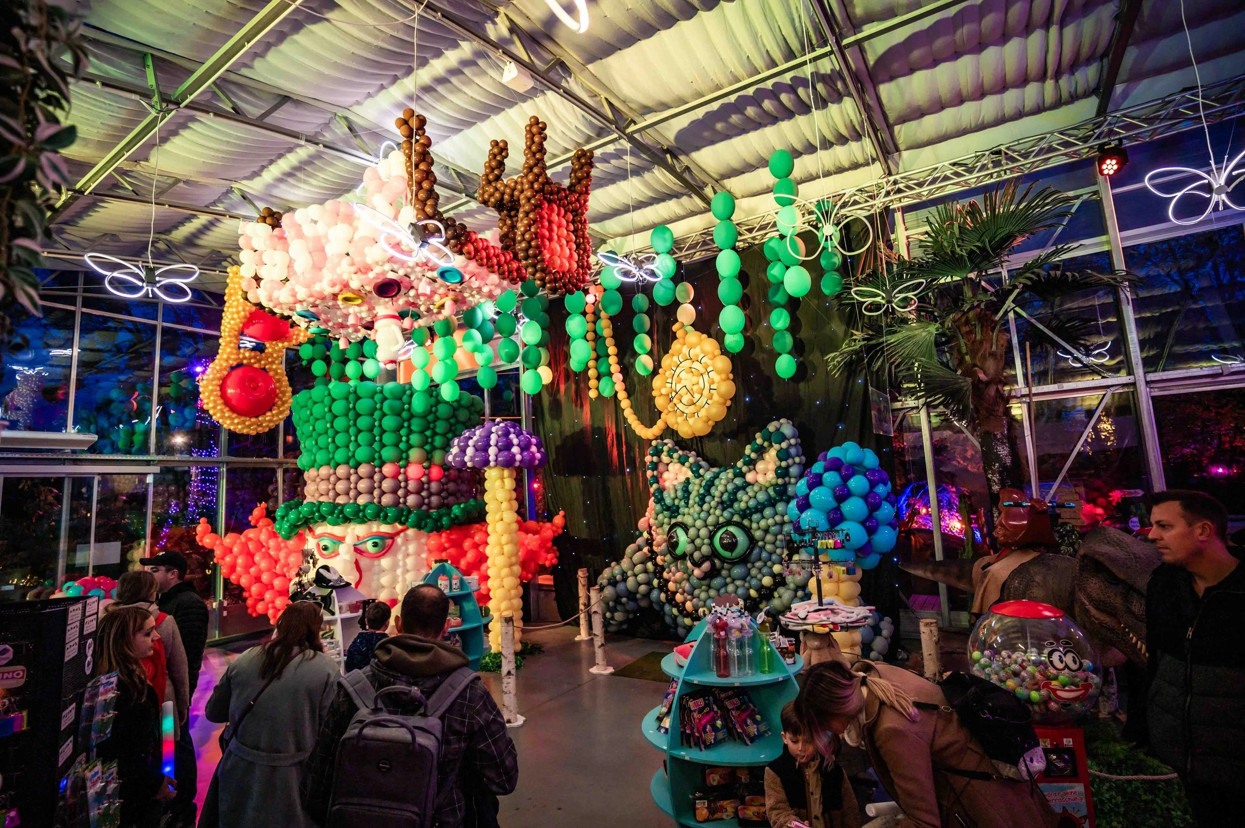 Artful balloon creations and immersive VR rides bring the story to life.