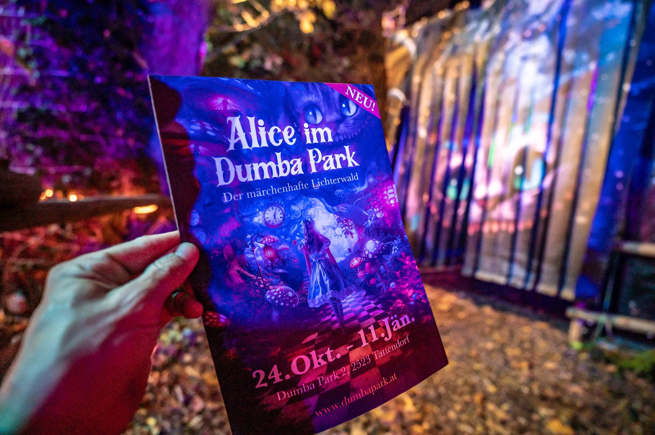 “Alice in Dumba Park” doesn’t retell the story, it creates an entirely new adventure, inspired by the symbols, characters, and emotions of the original. Step into a world where light art, imagination, and music merge into a fully immersive experience.