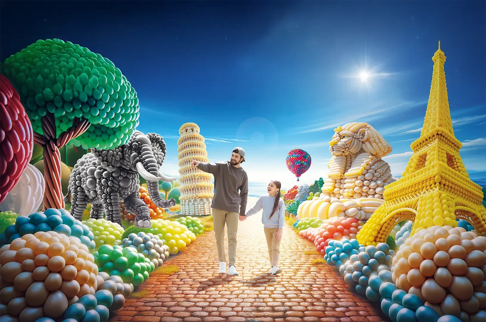 a marvelous world built from more than 500,000 balloons covering an area of about 3,000 m2 , offering all-day entertainment for the whole family.